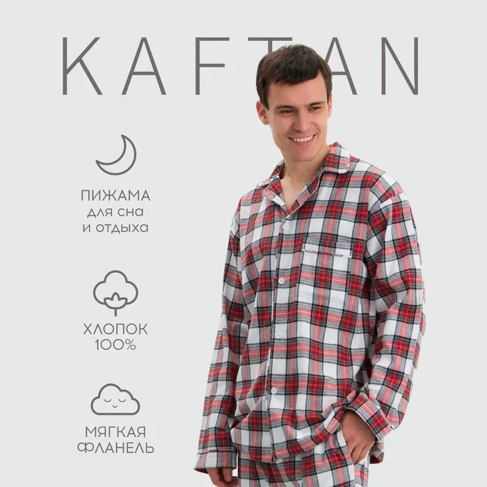 Пижама мужская из фланели (рубашка и брюки) KAFTAN, размер 54 — Характеристики
