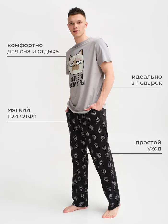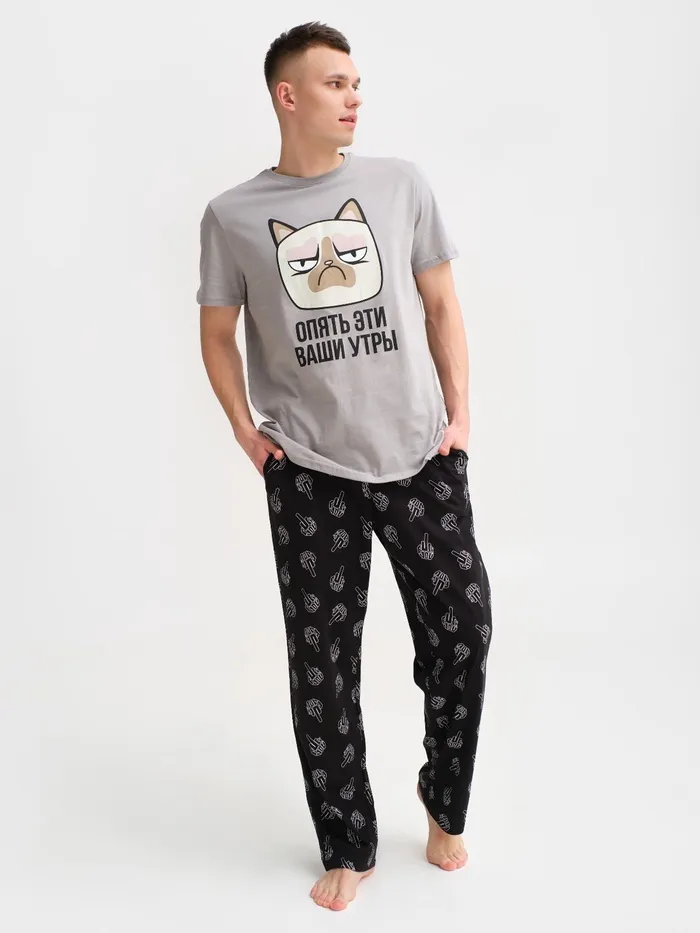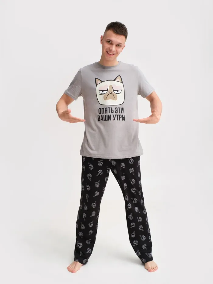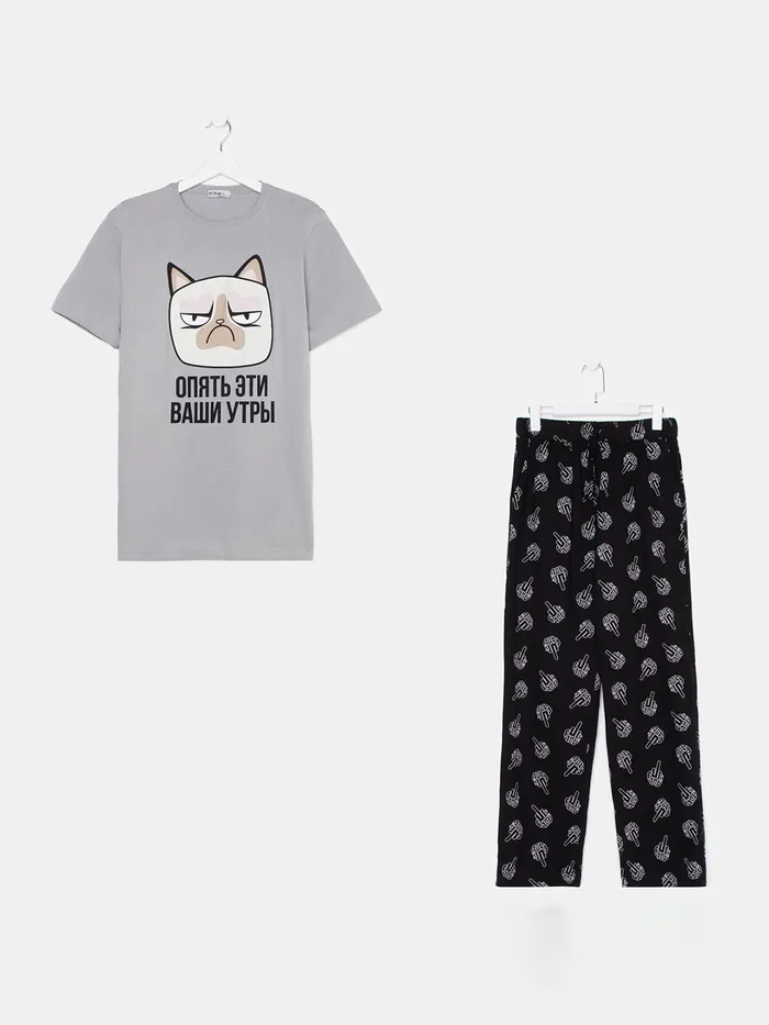 Пижама мужская KAFTAN "Утры" размер 50, серый/черный — Характеристики