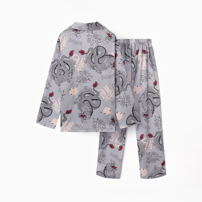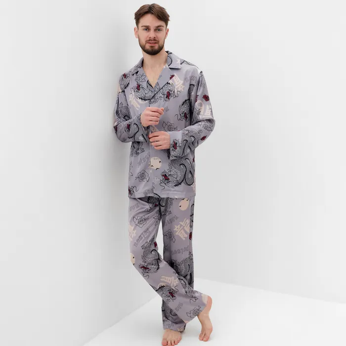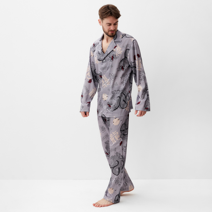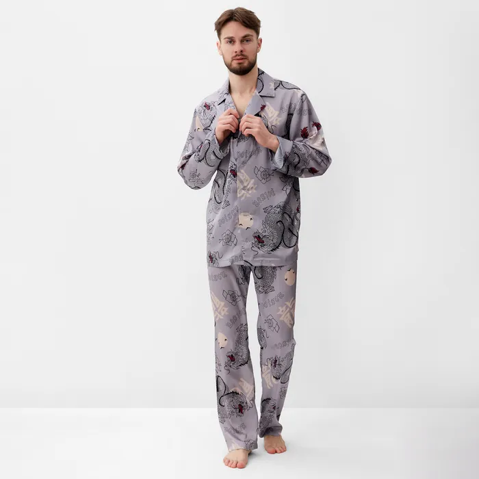 Пижама мужская (рубашка и брюки) KAFTAN "Дракон" размер 48, серый — Характеристики