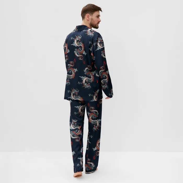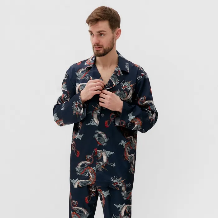 Пижама мужская (рубашка и брюки) KAFTAN "Дракон" размер 52, синий — Характеристики
