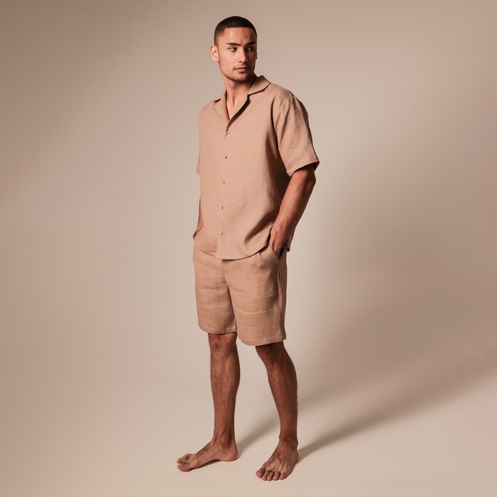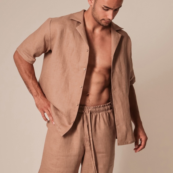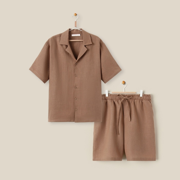 Пижама мужская (рубашка, шорты) SL HOME, размер 44-46, коричневая — Характеристики