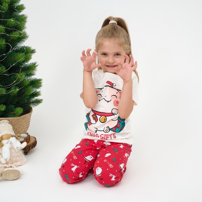 Пижама новогодняя детская KAFTAN «Новогодний котик», размер 32 (110-116 см)