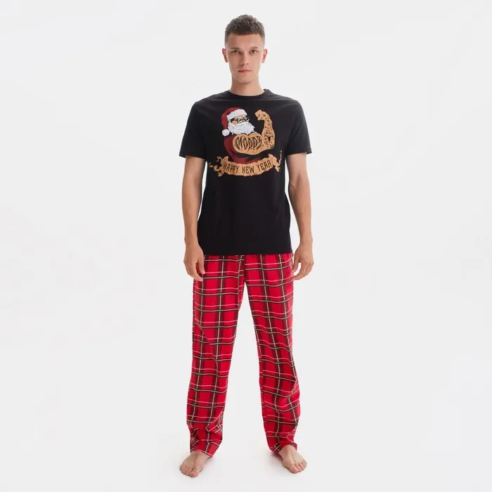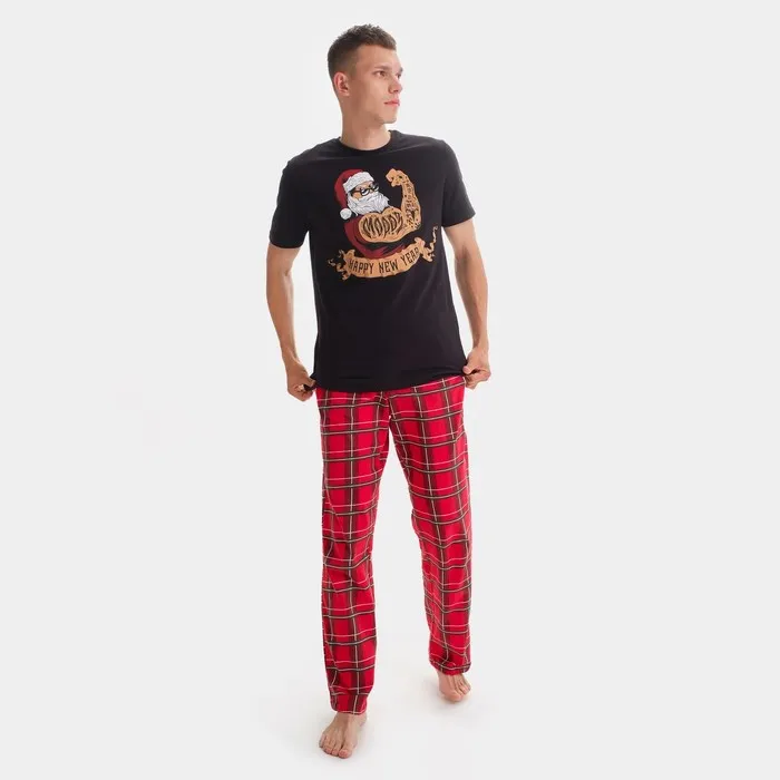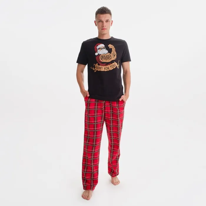 Пижама новогодняя мужская KAFTAN "New year", цвет красный/чёрный, размер 48 — Характеристики