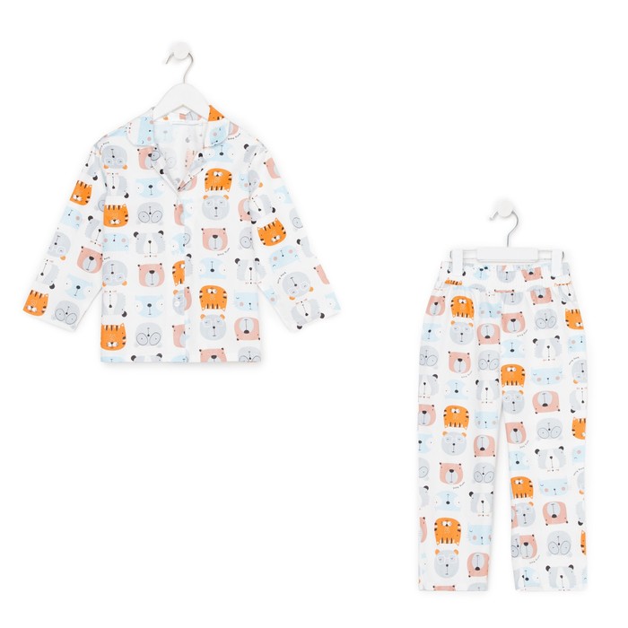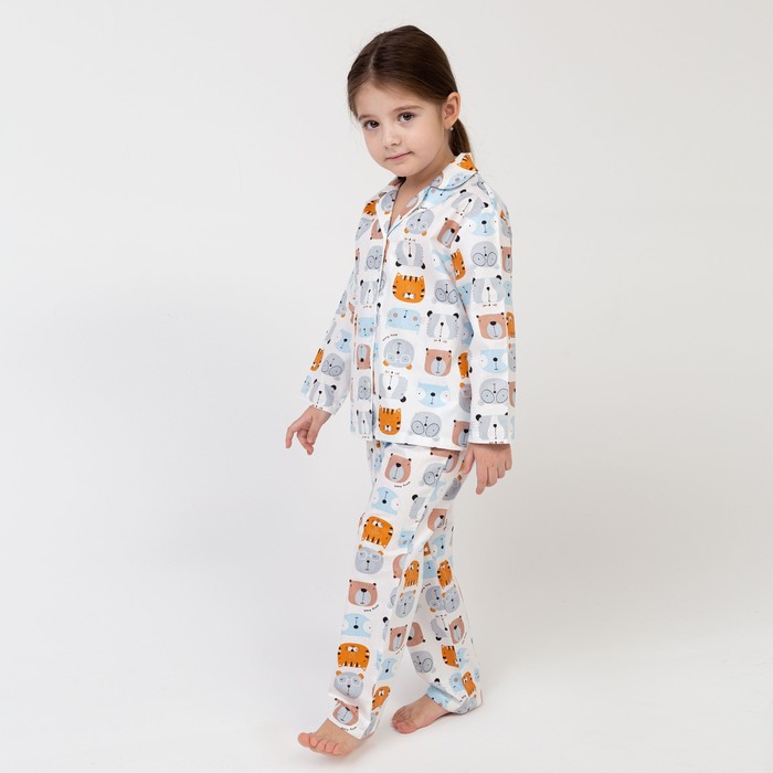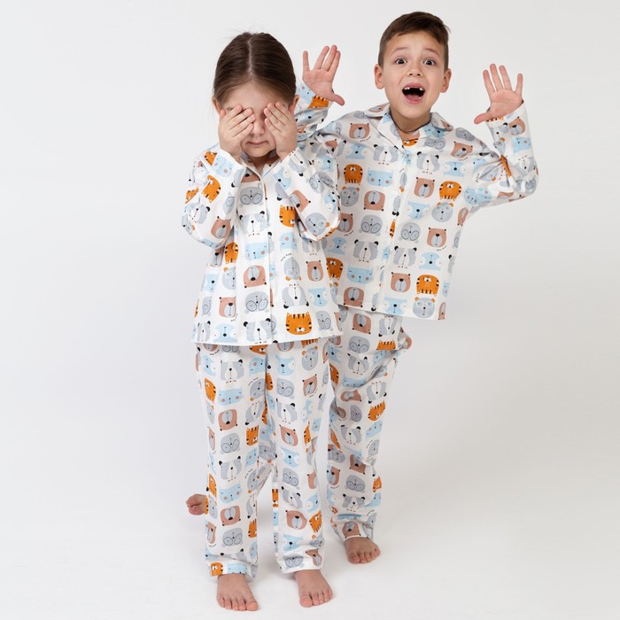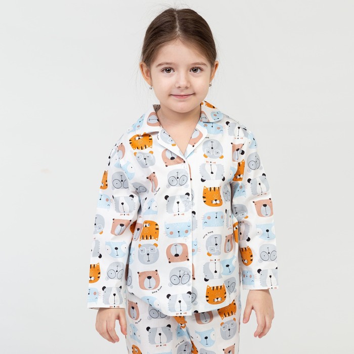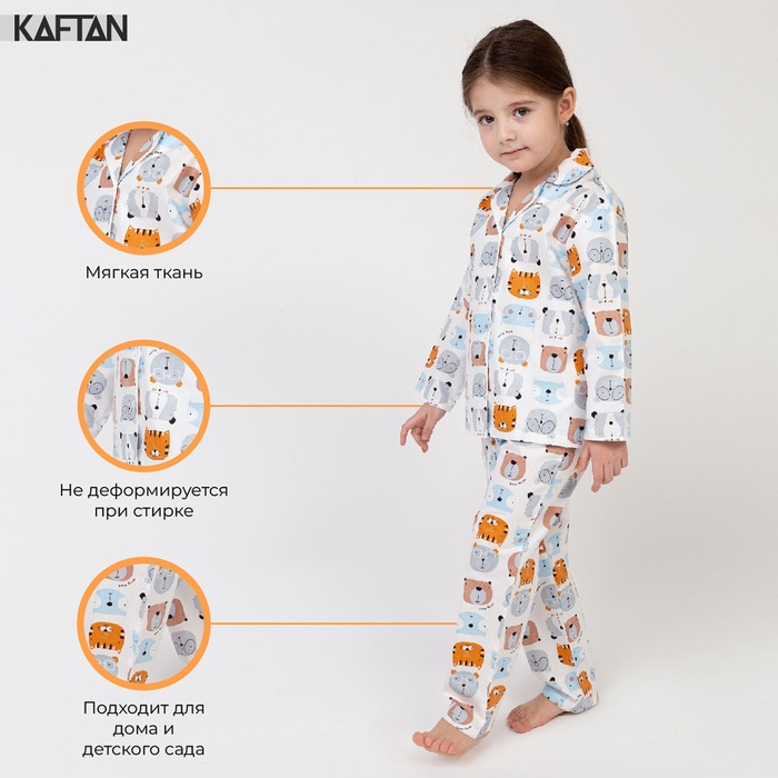 Пижама (рубашка, брюки) детская KAFTAN «Зверята», белая, размер 32 (110-116 см) — Характеристики