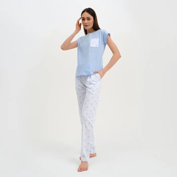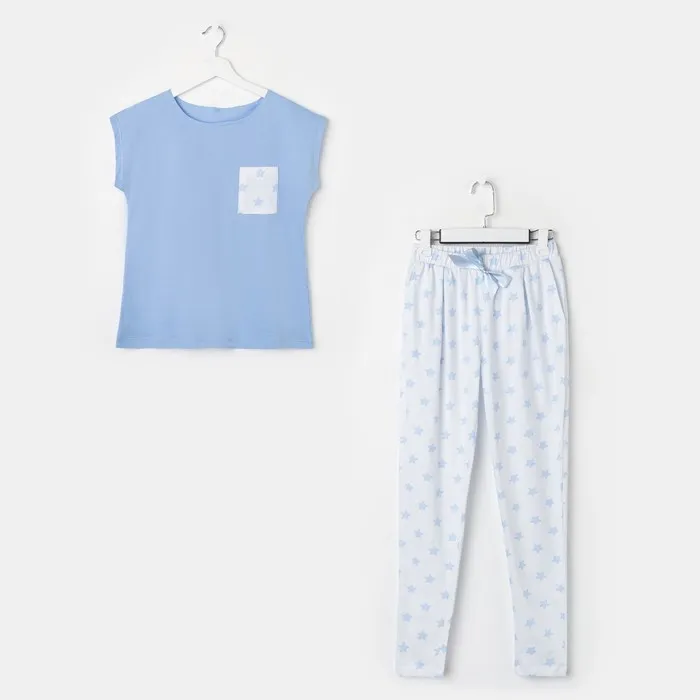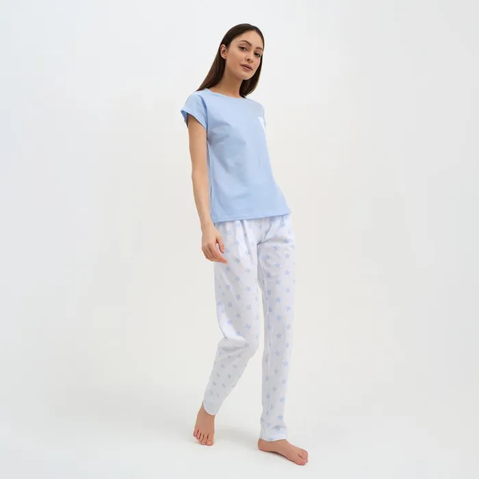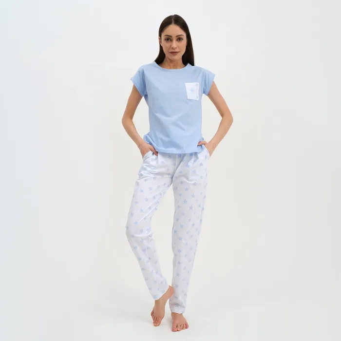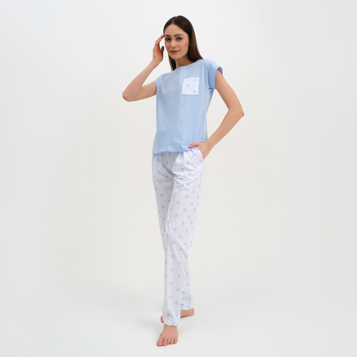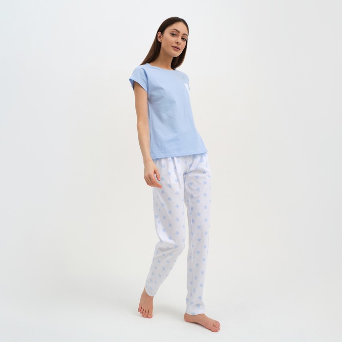 Пижама женская (брюки, футболка) KAFTAN «Звёздочки», размер 40-42, цвет голубой, белый — Характеристики