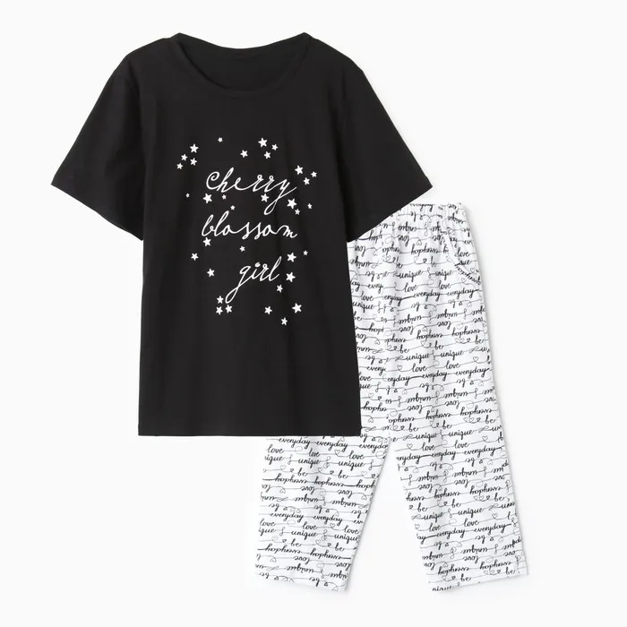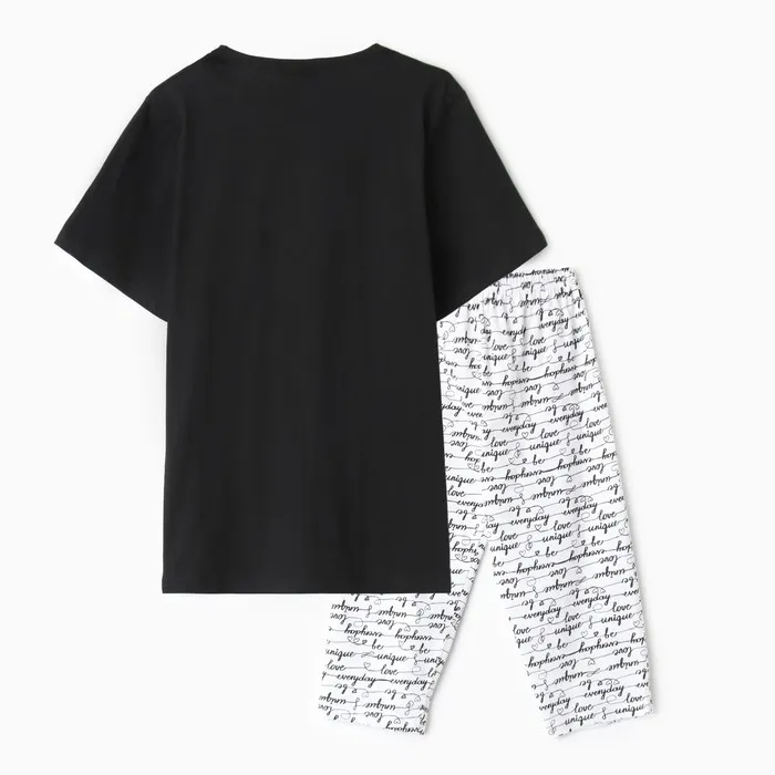 Пижама женская (футболка, бриджи), размер 44, цвет чёрный, серый — Характеристики