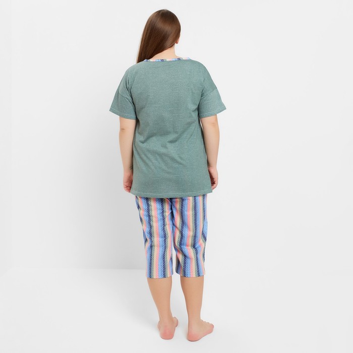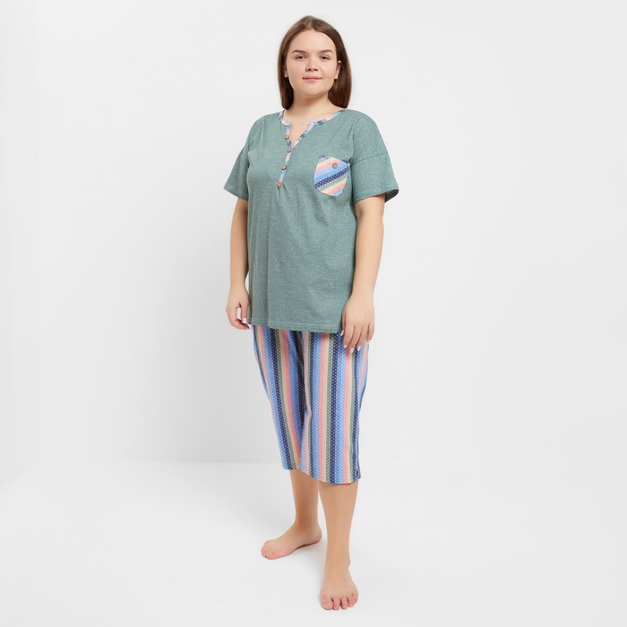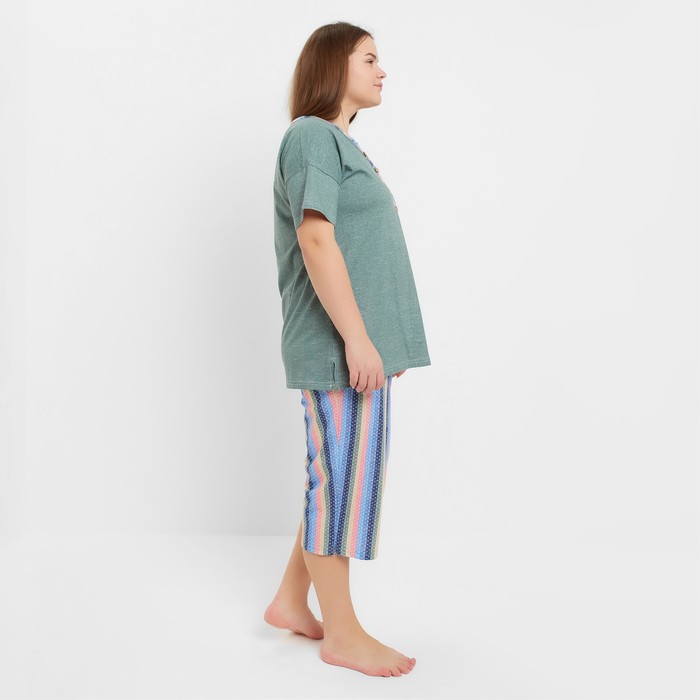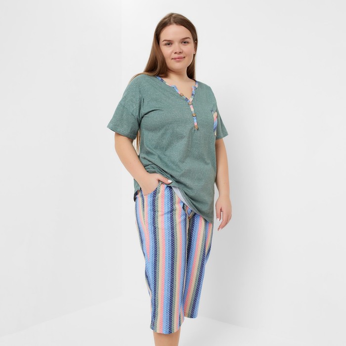 Пижама женская (футболка, бриджи), размер 48, цвет олива — Характеристики