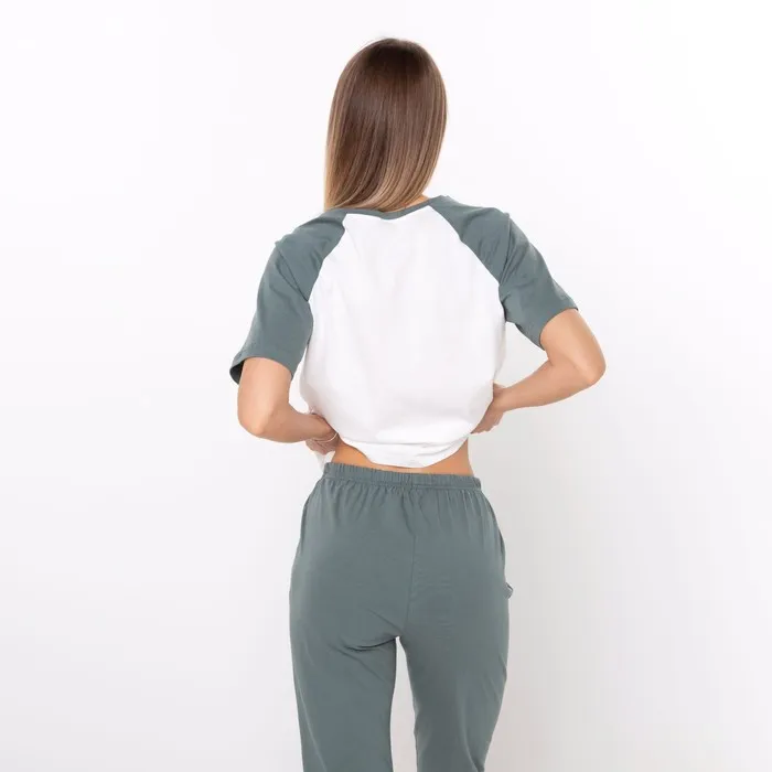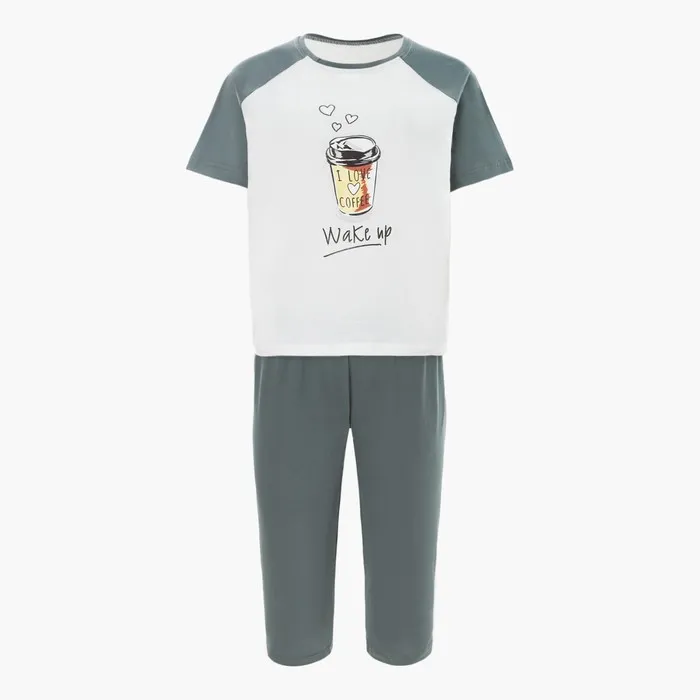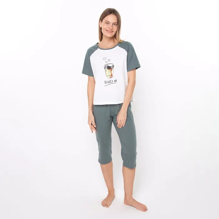 Пижама женская (футболка, бриджи) Wake up, серо-зелёная, размер 50 — Характеристики