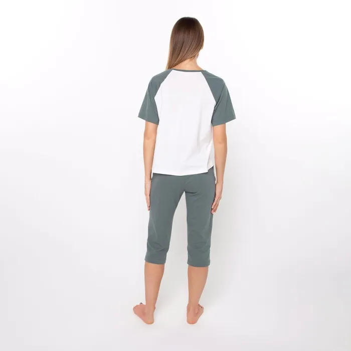 Пижама женская (футболка, бриджи) Wake up, серо-зелёная, размер 50