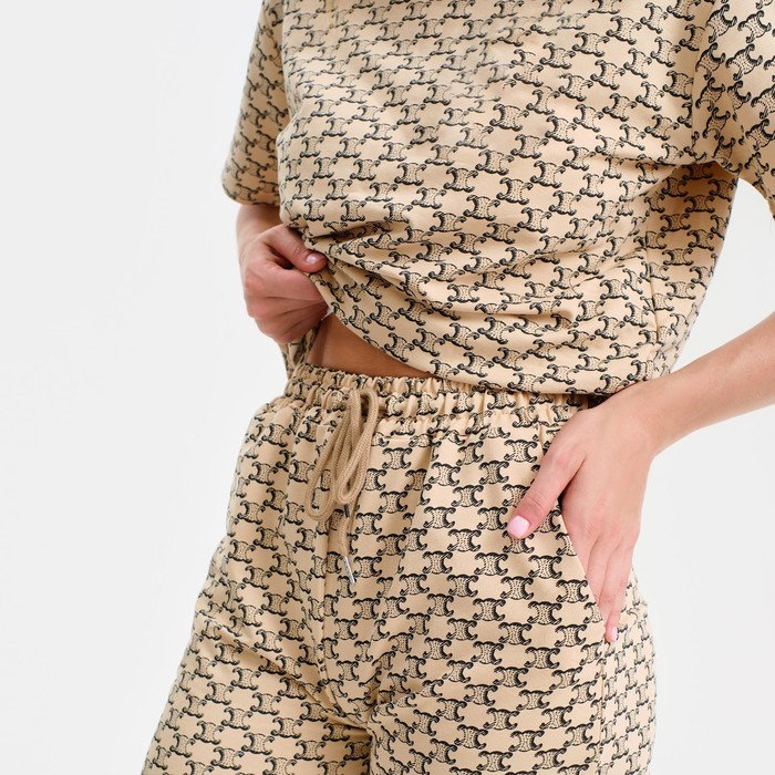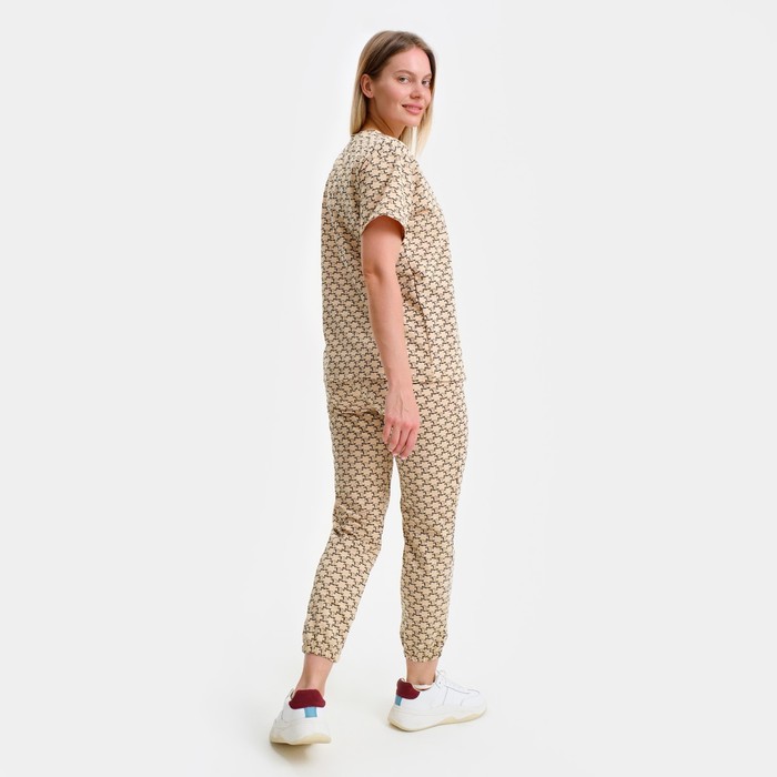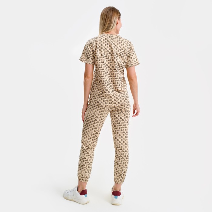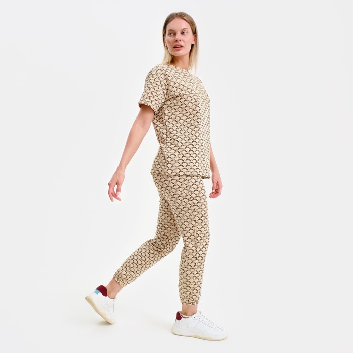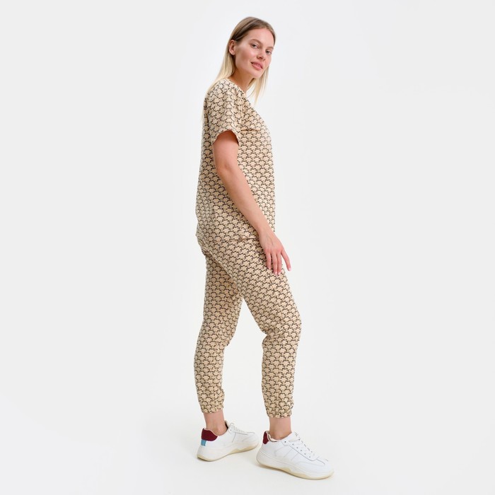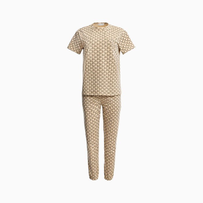 Пижама женская (футболка, брюки), бежевая, размер one size (44-48)