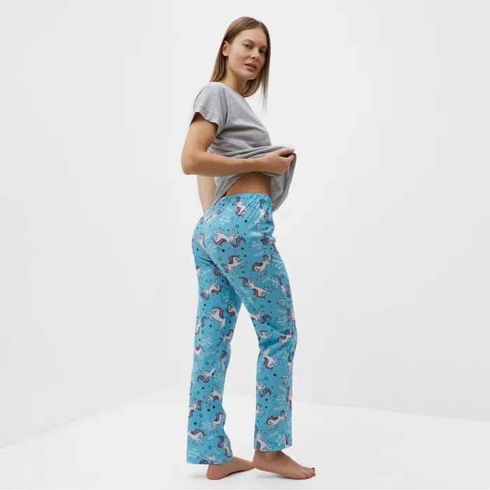 Пижама женская (футболка, брюки) «Единорог», размер 44, цвет серый, голубой — Характеристики