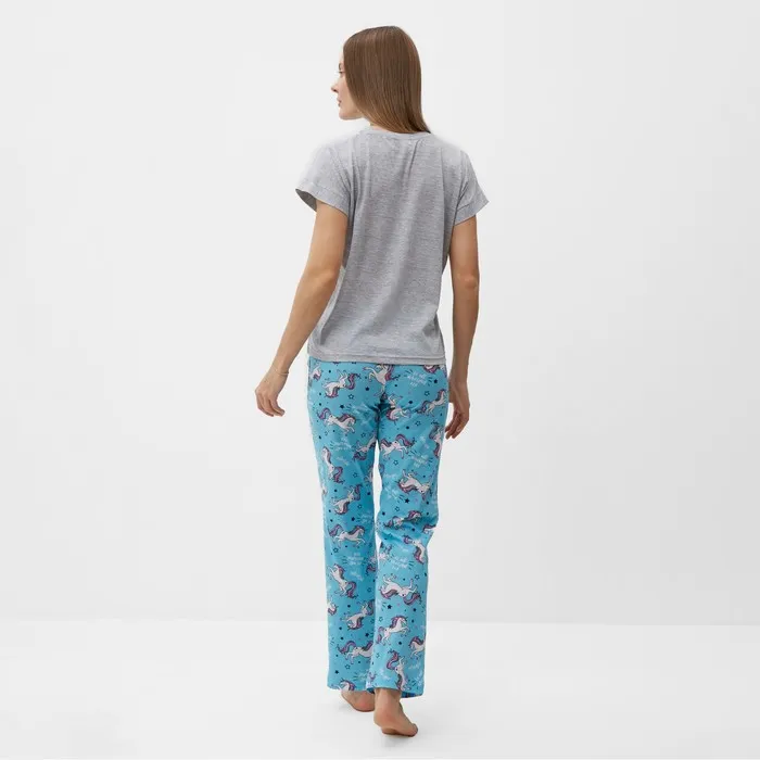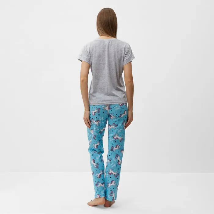 Пижама женская (футболка, брюки) «Единорог», размер 44, цвет серый, голубой