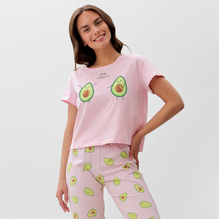Пижама женская (футболка, брюки) KAFTAN Avocado, размер 48-50, розовая — Характеристики