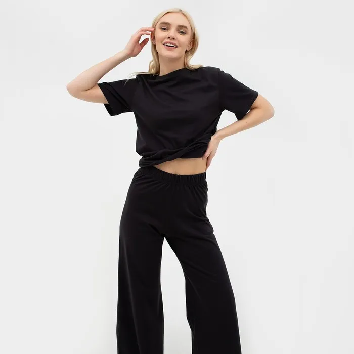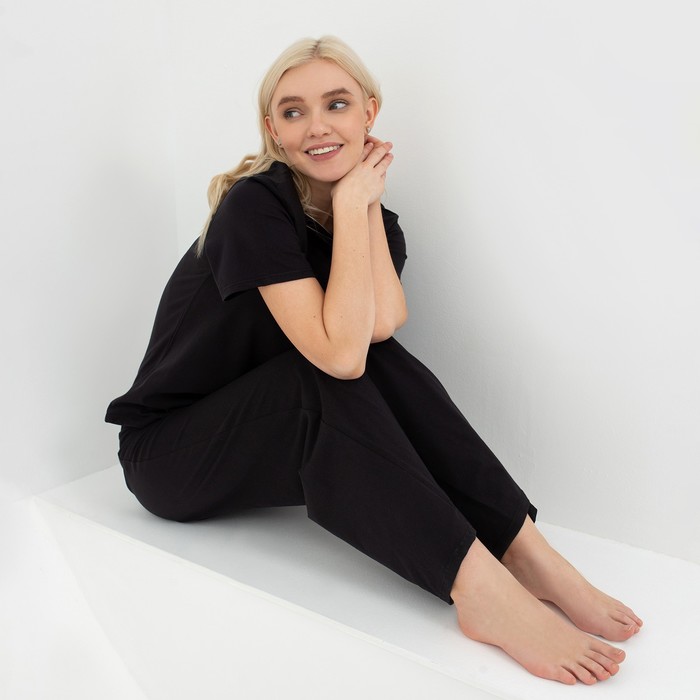 Пижама женская (футболка, брюки) KAFTAN Basic, размер 40-42, чёрная — Характеристики