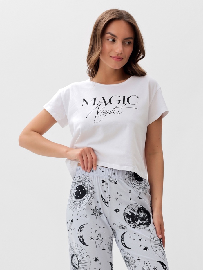 Пижама женская (футболка, брюки) KAFTAN Magic night, размер 48-50, белая — Характеристики