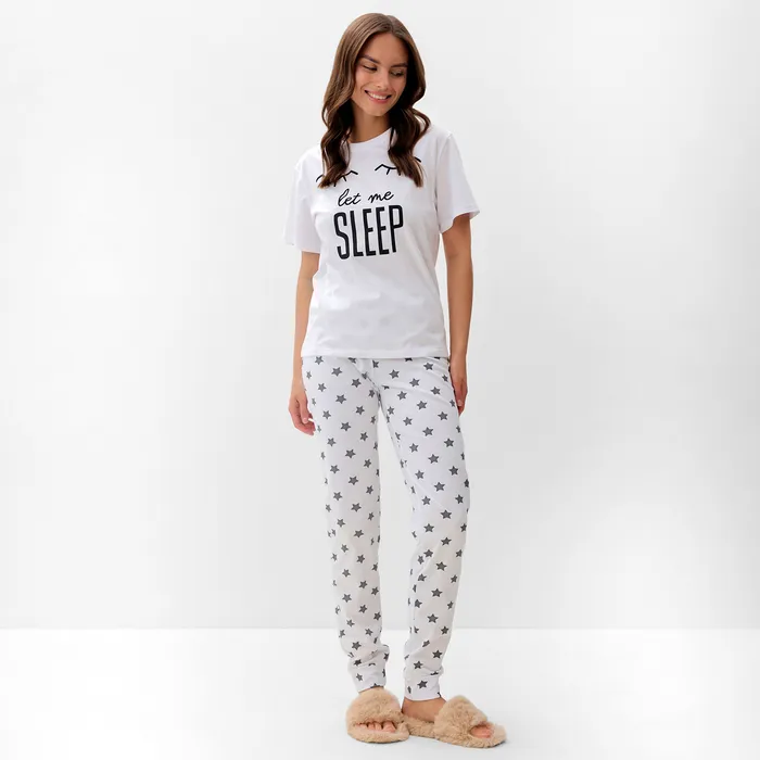 Пижама женская (футболка, брюки) KAFTAN Sleep, размер 40-42, белая — Характеристики