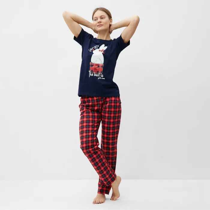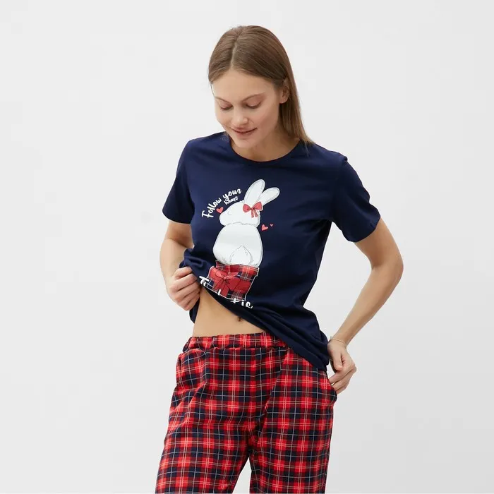 Пижама женская (футболка, брюки), размер 50, синяя