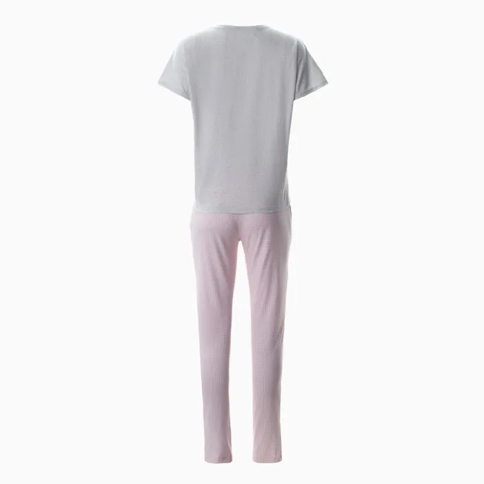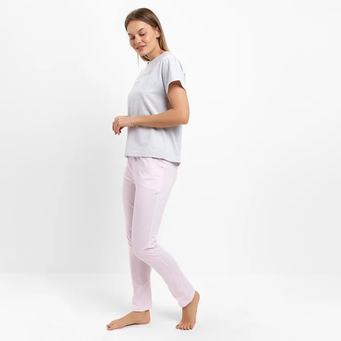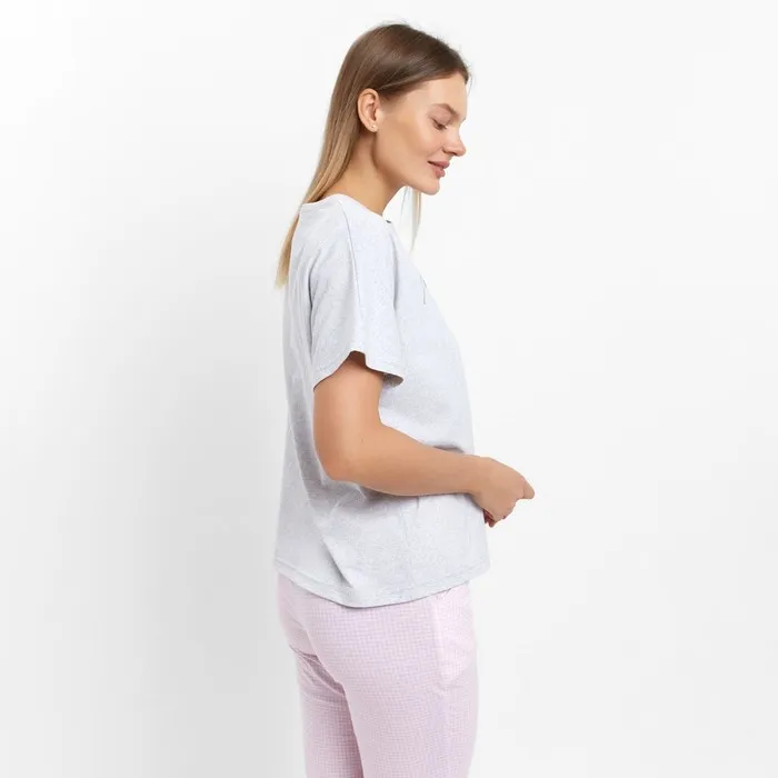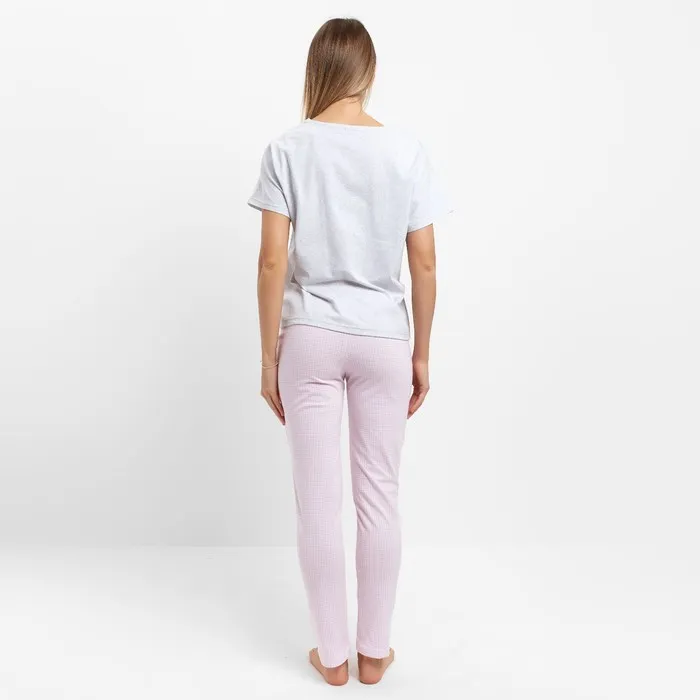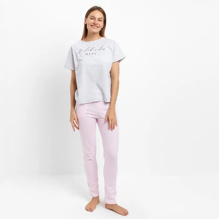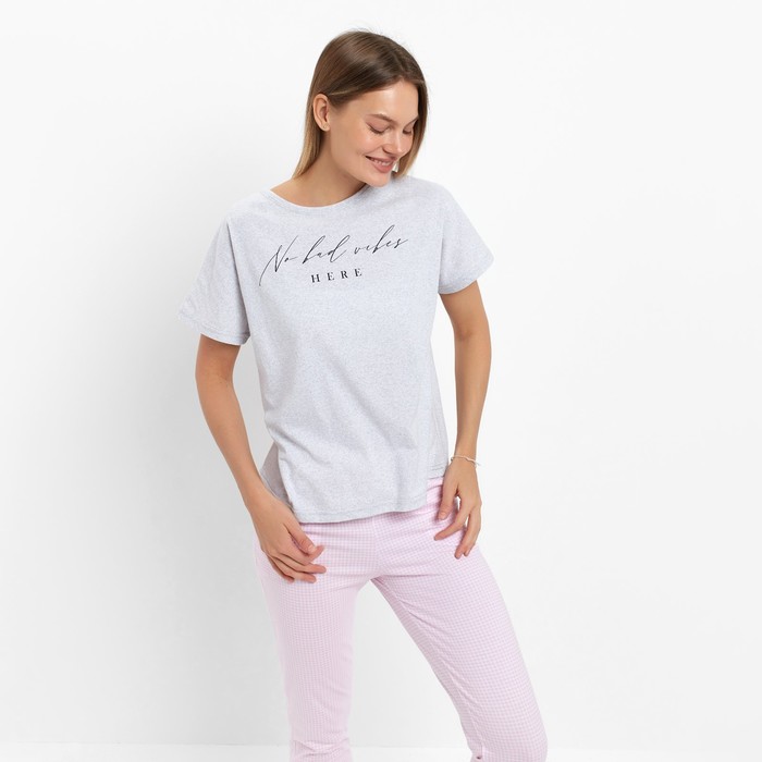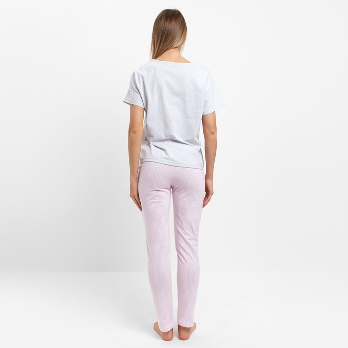 Пижама женская (футболка, брюки), серая, розовая, размер 52 — Характеристики