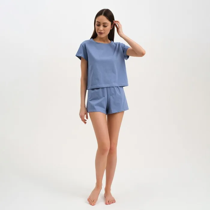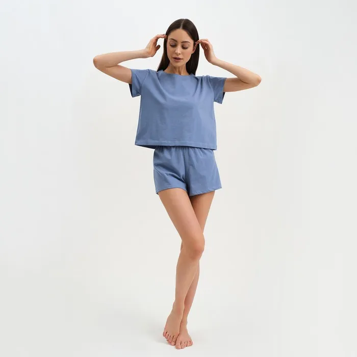 Пижама женская (футболка и шорты) KAFTAN "Basic" размер 44-46, цвет синий — Характеристики