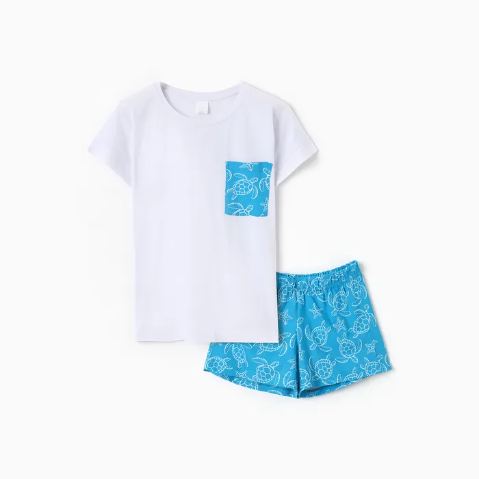 Пижама женская (футболка, шорты) «Черепахи», размер 46, цвет белый, синий