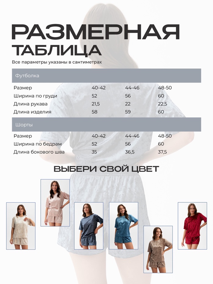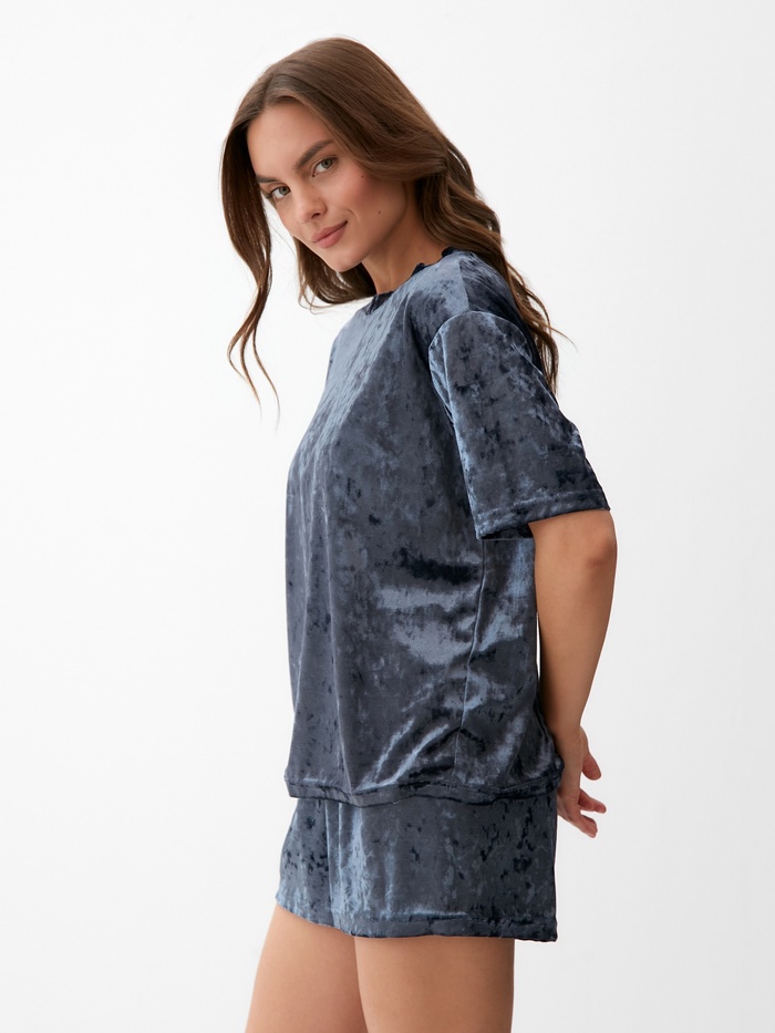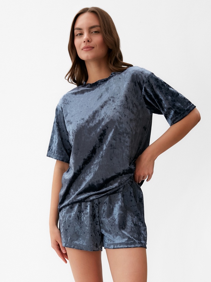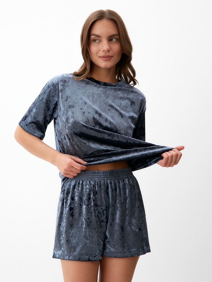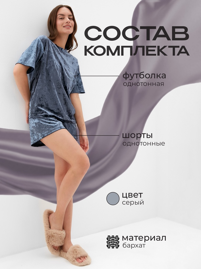 Пижама женская (футболка, шорты) KAFTAN «Бархат», размер 40-42, серая — Характеристики