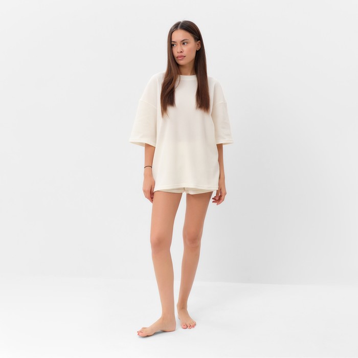 Пижама женская (футболка, шорты) KAFTAN Basic line, размер 42, молочная