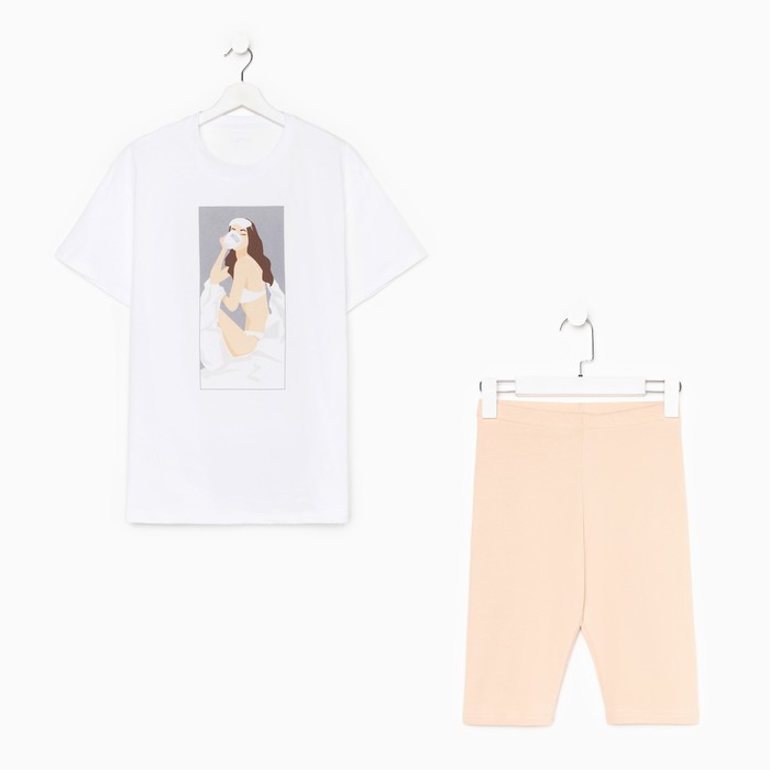 Пижама женская (футболка, шорты) KAFTAN Coffee, размер 40-42, белая — Характеристики