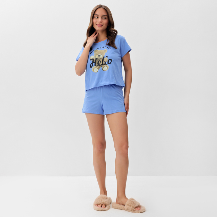 Пижама женская (футболка, шорты) KAFTAN Hello, размер 48-50, голубая — Характеристики