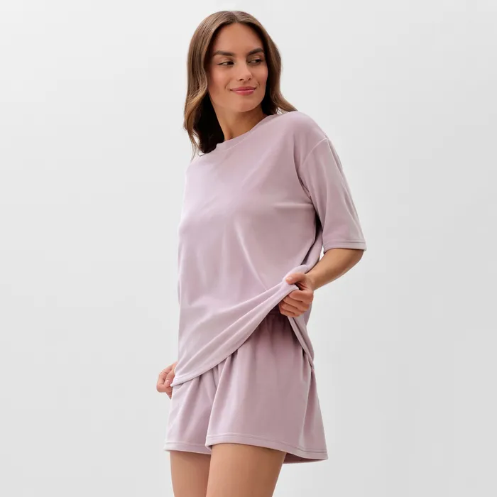 Пижама женская (футболка, шорты) KAFTAN Plushy, размер 48-50, лиловая — Характеристики