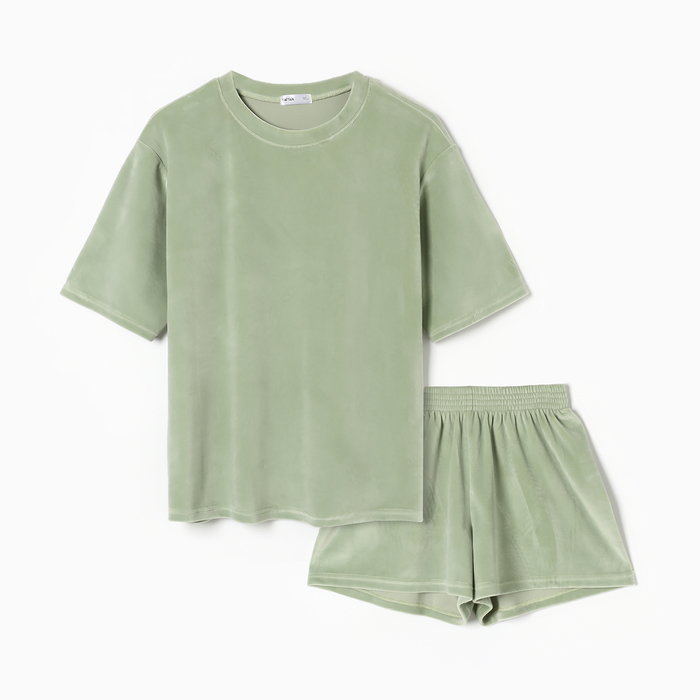 Пижама женская (футболка, шорты) KAFTAN Plushy, размер 48-50, зелёная — Характеристики