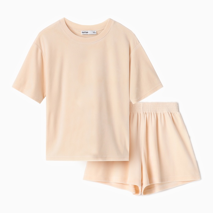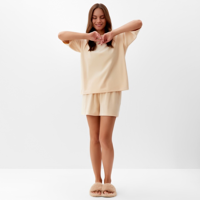 Пижама женская (футболка, шорты) KAFTAN Plushy, размер 52-54, молочная — Характеристики