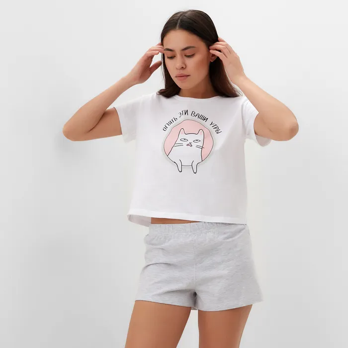 Пижама женская (футболка, шорты) KAFTAN «Утры», размер 40-42, белая — Характеристики
