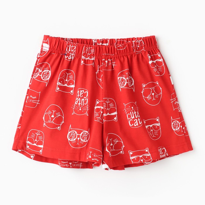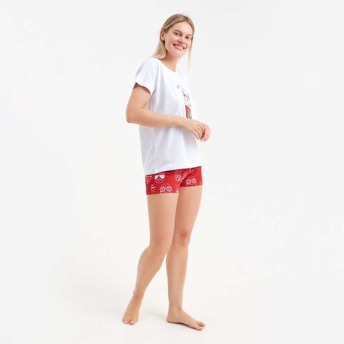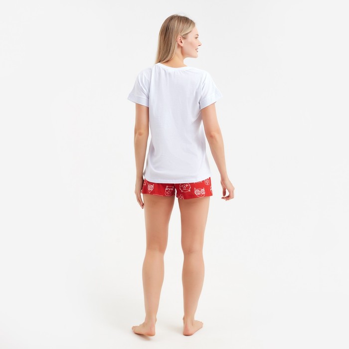 Пижама женская (футболка, шорты) «Котенок в стакане», белая, красная, размер 50