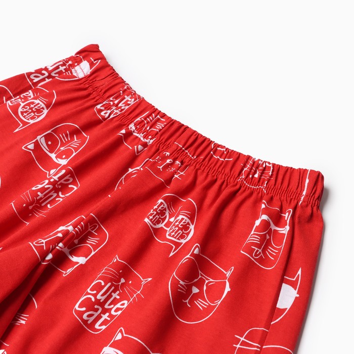 Пижама женская (футболка, шорты) «Котенок в стакане», размер 48, цвет белый, красный