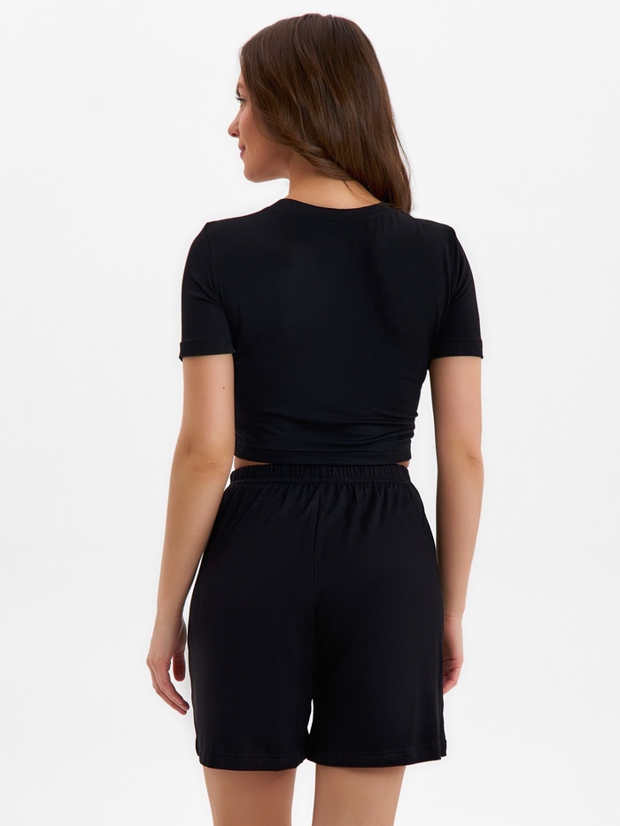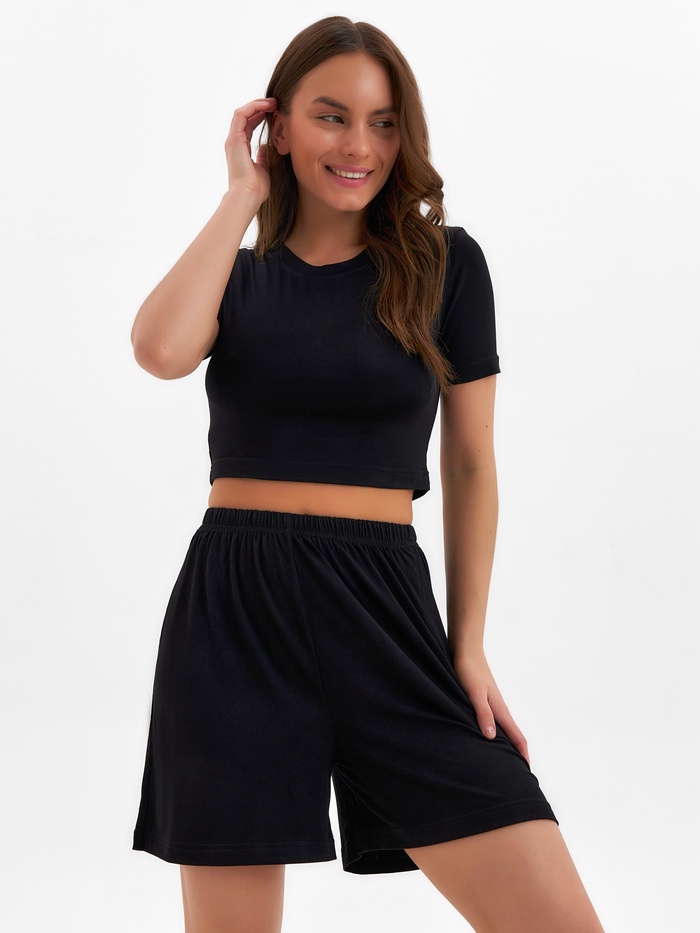 Пижама женская (футболка, шорты) MINAKU: Home collection, размер 42, чёрная — Характеристики