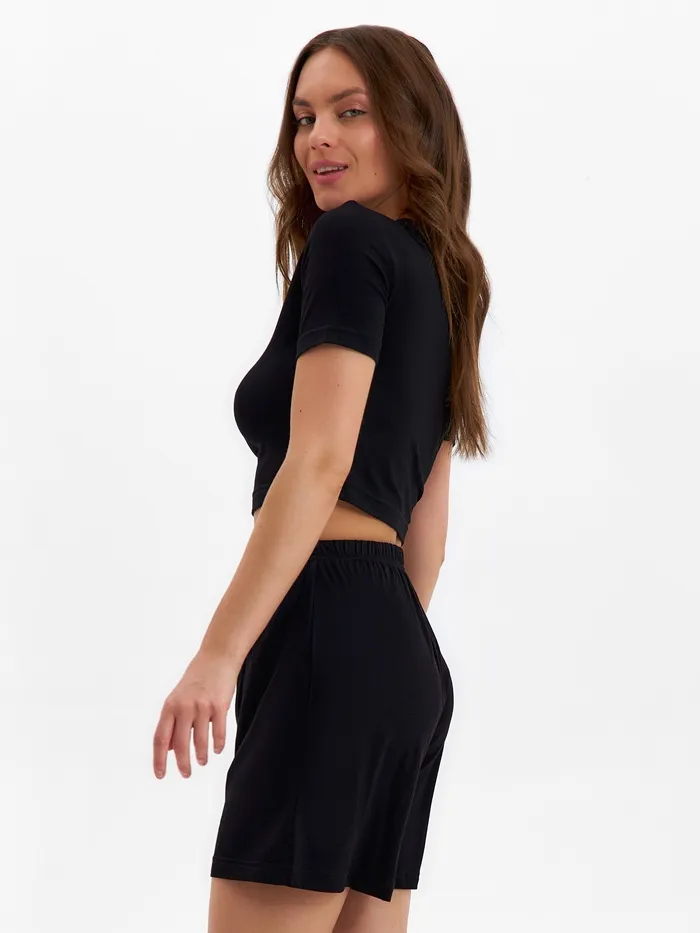 Пижама женская (футболка, шорты) MINAKU: Home collection, размер 44, чёрная — Характеристики