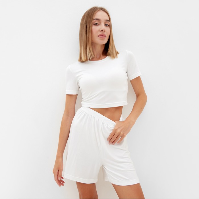 Пижама женская (футболка, шорты) MINAKU: Home collection, размер 48, цвет экрю — Характеристики