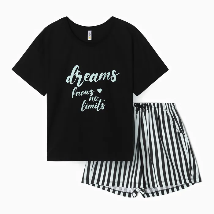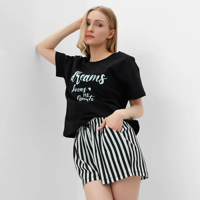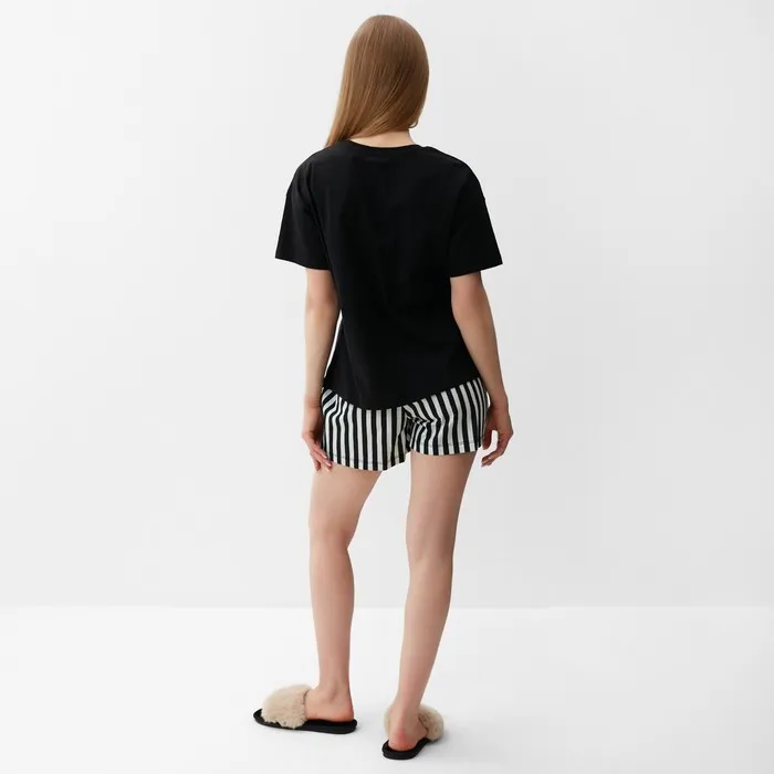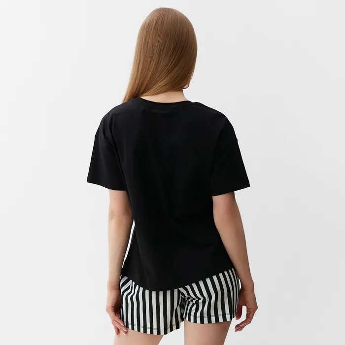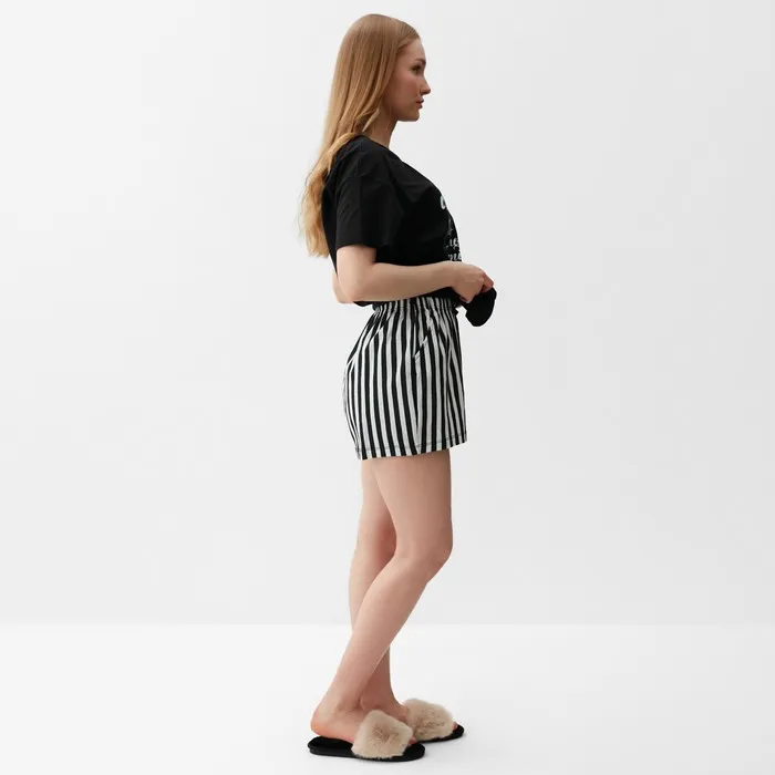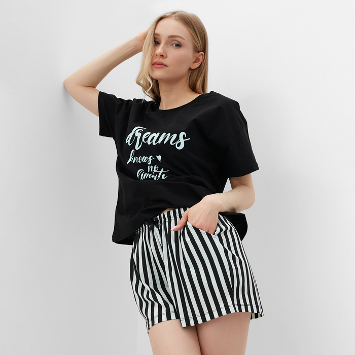 Пижама женская (футболка, шорты), размер 42, цвет чёрно-мятная полоска — Характеристики