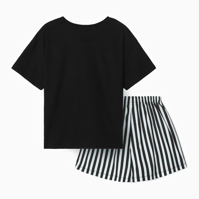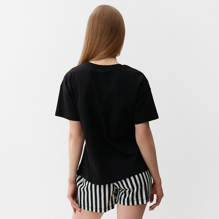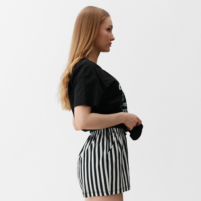 Пижама женская (футболка, шорты), размер 42, цвет чёрно-мятная полоска