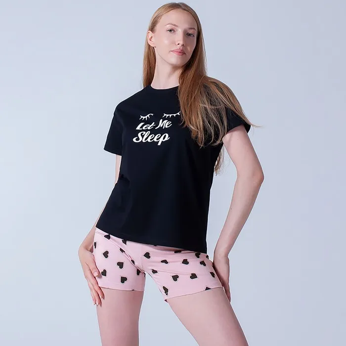 Пижама женская (футболка, шорты), размер 42, цвет чёрный, розовый — Характеристики