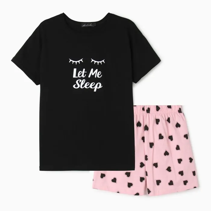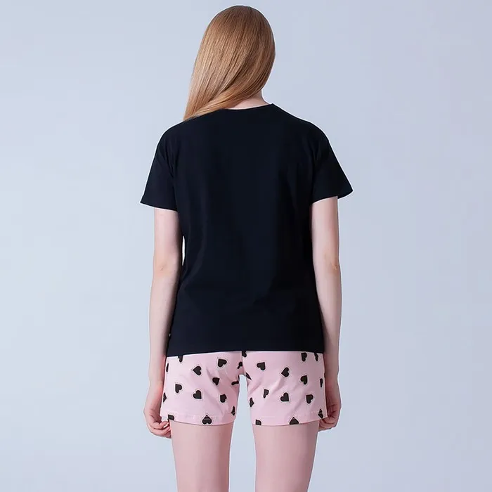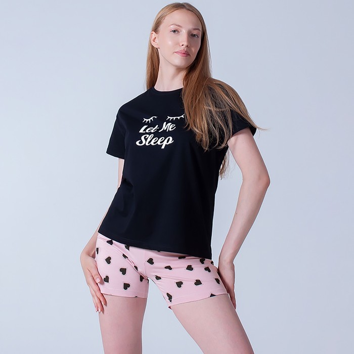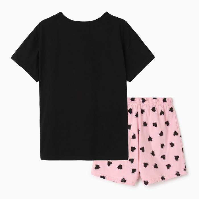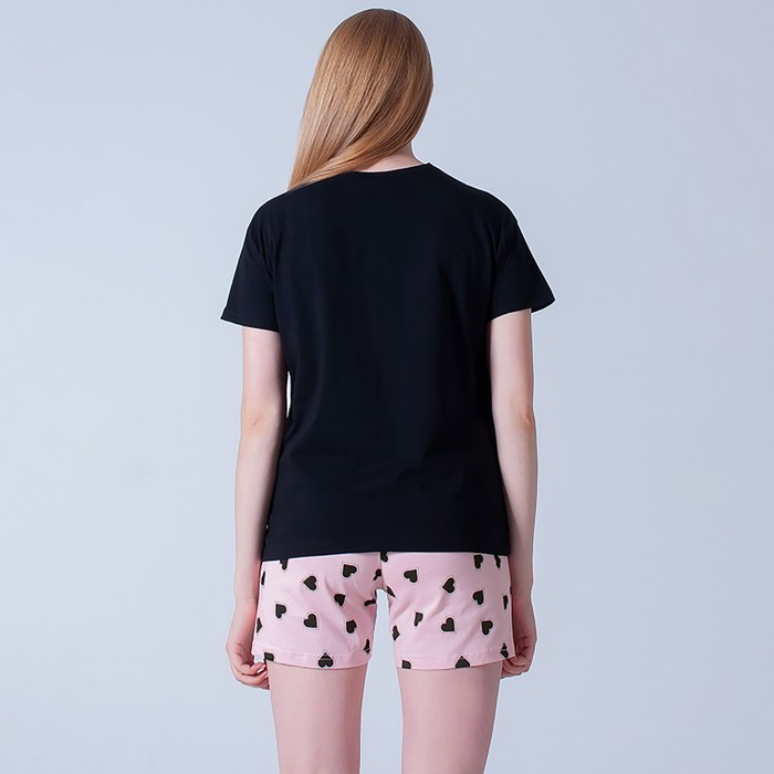 Пижама женская (футболка, шорты), размер 42, цвет чёрный, розовый