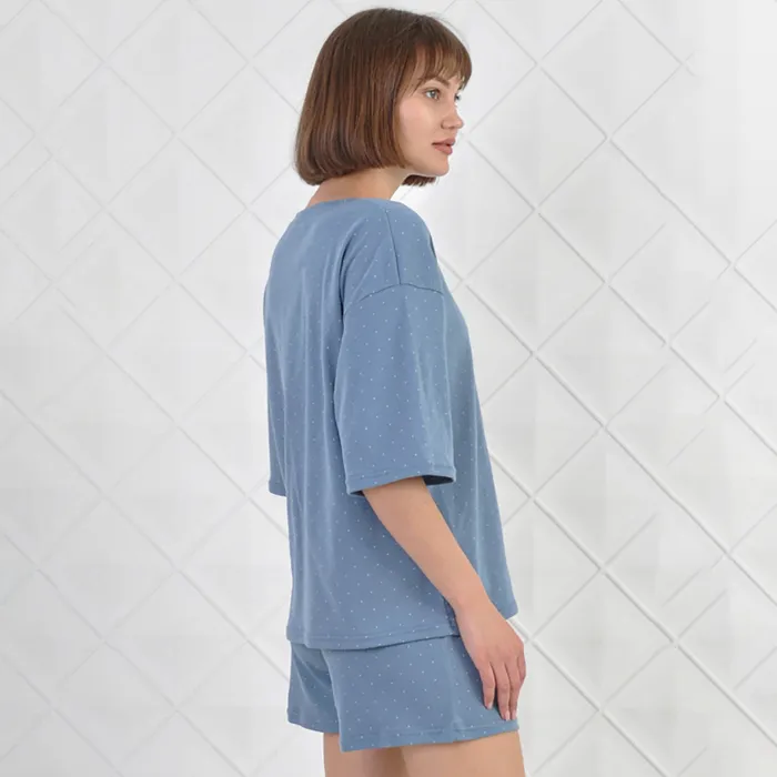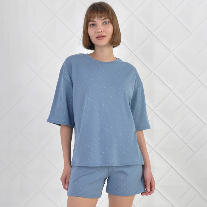 Пижама женская (футболка, шорты), размер 44, голубая — Характеристики
