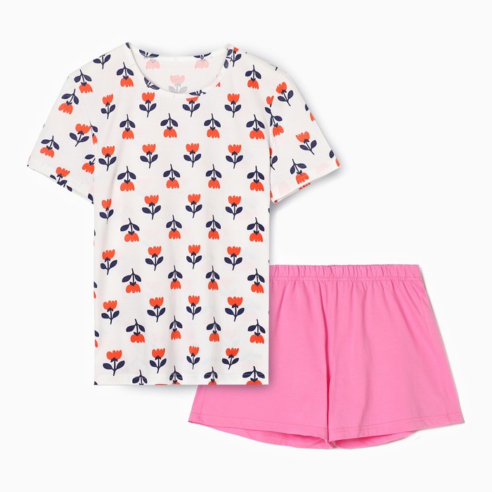 Пижама женская (футболка, шорты), размер 44, молочная