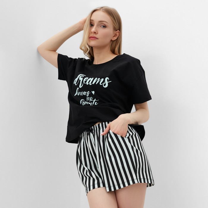 Пижама женская (футболка, шорты), размер 44, цвет чёрно-мятная полоска — Характеристики
