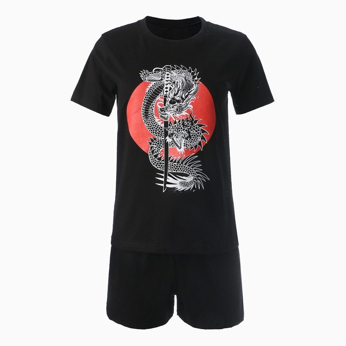 Пижама женская (футболка, шорты) Tusi, размер 44, цвет чёрный дракон