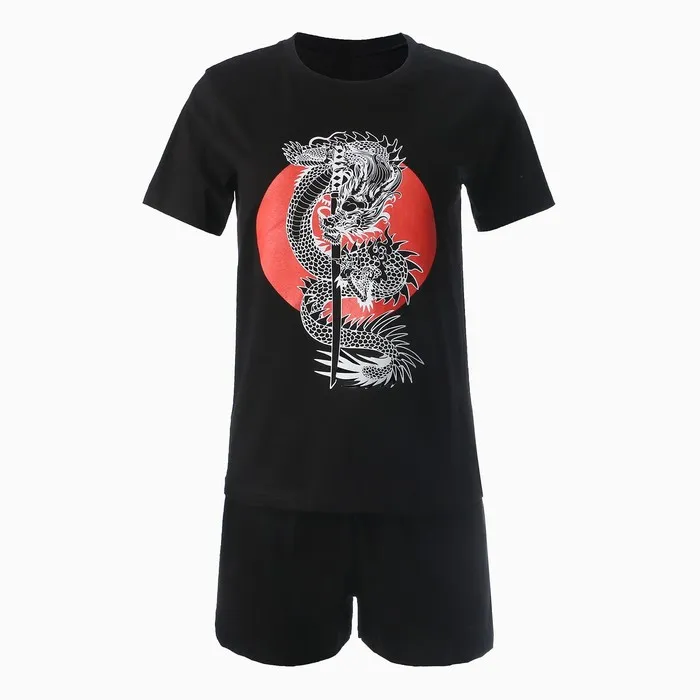 Пижама женская (футболка, шорты) Tusi, размер 44, цвет чёрный дракон — Характеристики