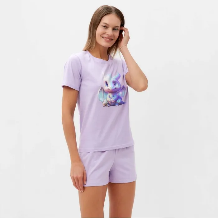 Пижама женская (футболка, шорты) Tusi, размер 44, цвет сиреневый дракон — Характеристики
