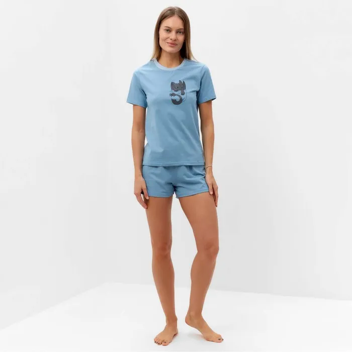 Пижама женская (футболка, шорты) Tusi, размер 46, голубой
