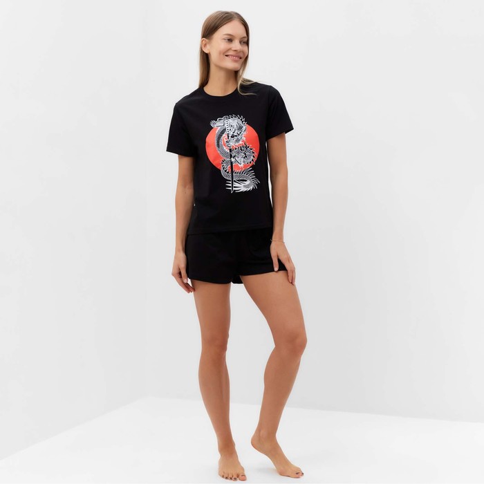 Пижама женская (футболка, шорты) Tusi, размер 48, цвет чёрный дракон