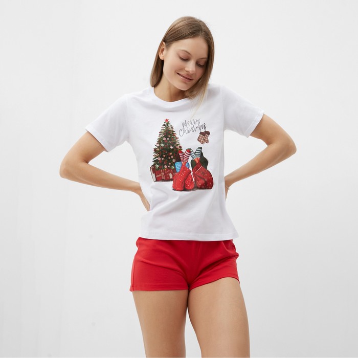 Комплект женский домашний (футболка,шорты), цвет белый/красный, размер 52